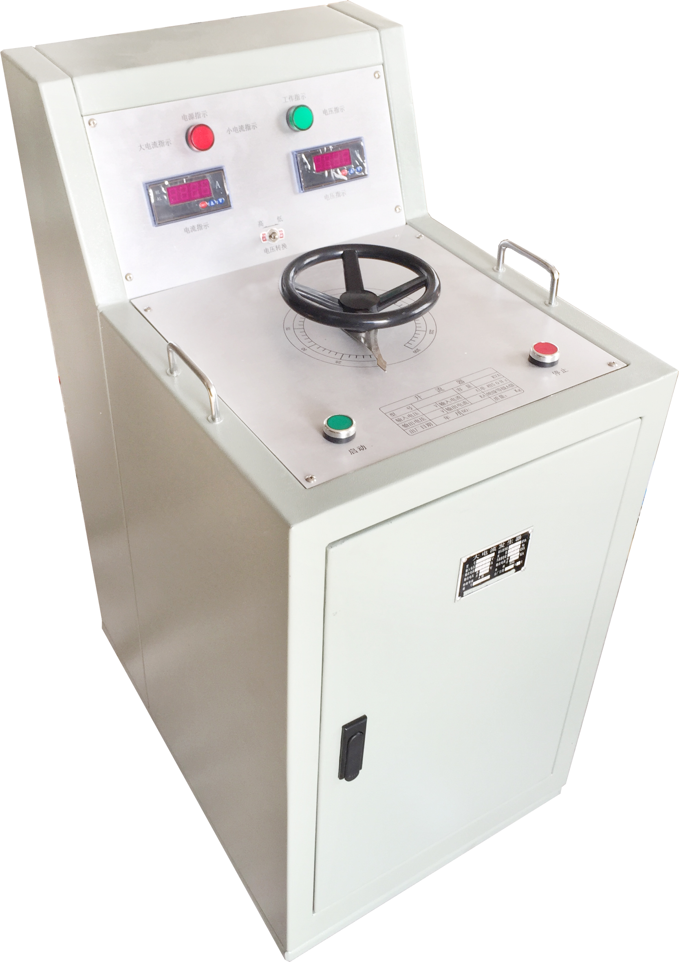 KDSL-82 2000A大電流發生器(升流器)屬于可移動式結構,它由儀表指示燈板和操作面板組成。儀表指示燈板分大、小量程的選擇開關(鈕子開關),綠色指示燈指的是電源信號,紅色指示燈指的是工作信號。操作面板由啟動按鈕(綠色)、停止按鈕(紅色)以及工作系統組成。具有結構合理、外形美觀、重量輕且移動方便等特點。