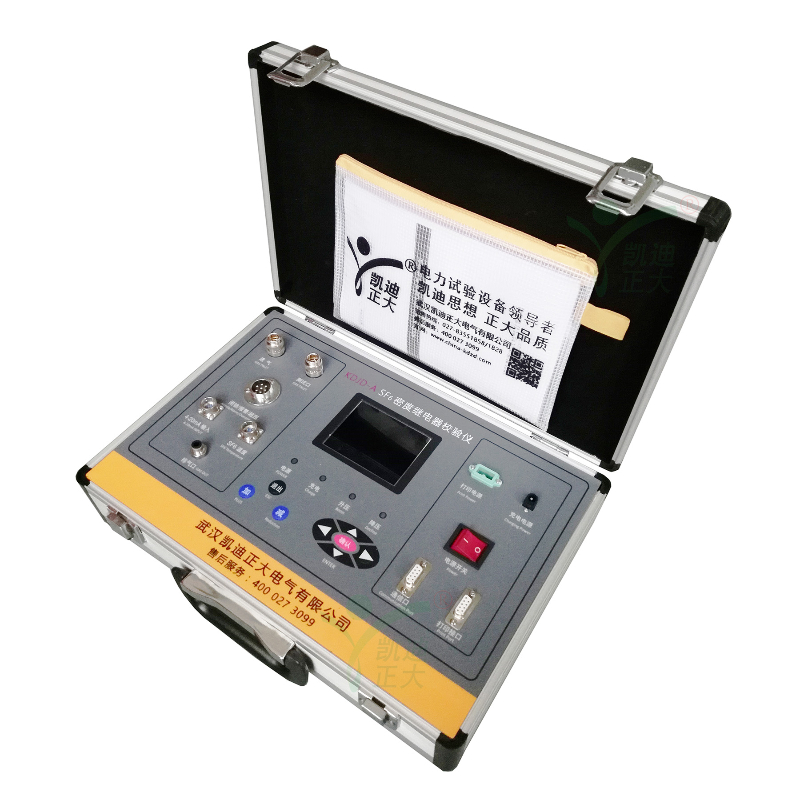 KDJD-ASF6密度繼電器檢驗(yàn)儀是一種智能化自動(dòng)的SF6密度繼電器校驗(yàn)儀器。該儀器采用單周期指令微機(jī)技術(shù),運(yùn)行速度是普通單片機(jī)的10倍,能對(duì)指針式接點(diǎn)輸出及智能式電流輸出的SF6密度繼電器進(jìn)行現(xiàn)場校驗(yàn),采用中斷方式對(duì)密度繼電器的動(dòng)作進(jìn)行實(shí)時(shí)捕獲,因此該儀器測量更準(zhǔn)確及時(shí)。本儀器是SF6氣體各種環(huán)境溫度下的壓力進(jìn)行標(biāo)準(zhǔn)換算的一種便攜式校驗(yàn)儀器,它也可以對(duì)SF6密度表、壓力表進(jìn)行自動(dòng)校驗(yàn)。