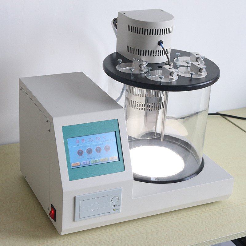 KDND-303A石油產品運動粘度自動測定儀,可同時啟用4支玻璃毛細管粘度計進行同一恒溫溫度下的運動粘度測定,每支粘度計可重復測定4次作為一組測試數據。