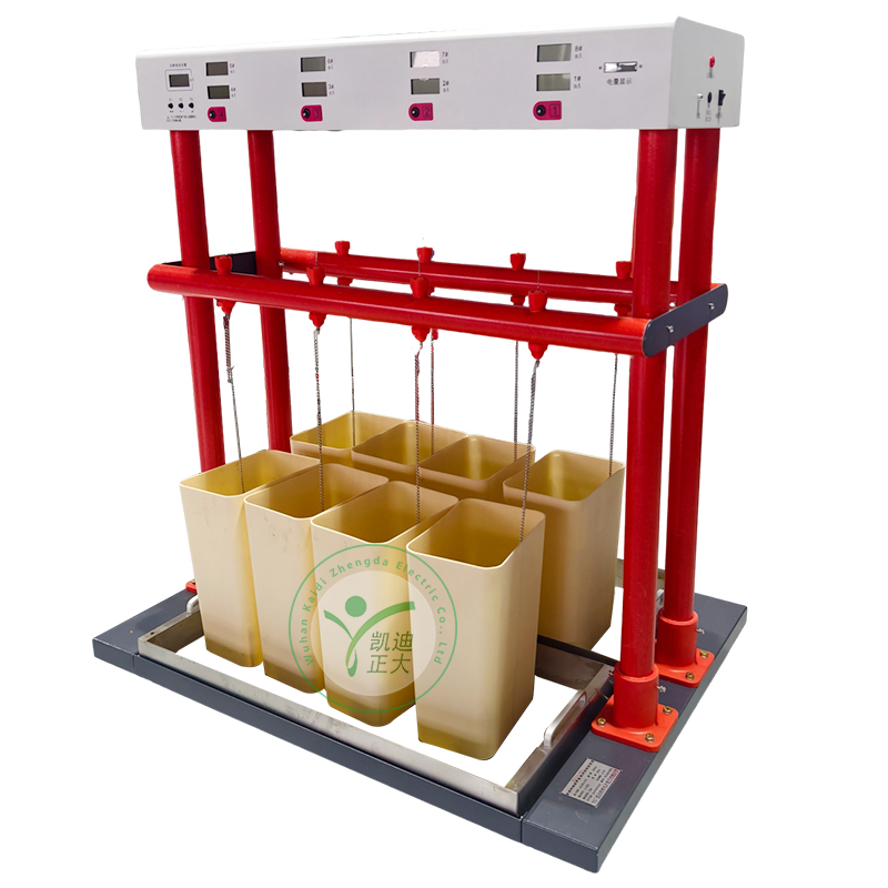 KDJS-6絕緣手套耐壓試驗裝置是絕緣靴(手套)批量試驗的專用設備,有效地解決了以往不規則的測試方法,簡化了測試程序,提高了檢測速度,減輕了檢測強度,保障了檢測人員的安全,可靠地鑒別絕緣手套(靴)的泄漏電流,絕緣老化和工頻耐壓等參數,可同時檢測六只絕緣手套(靴)。