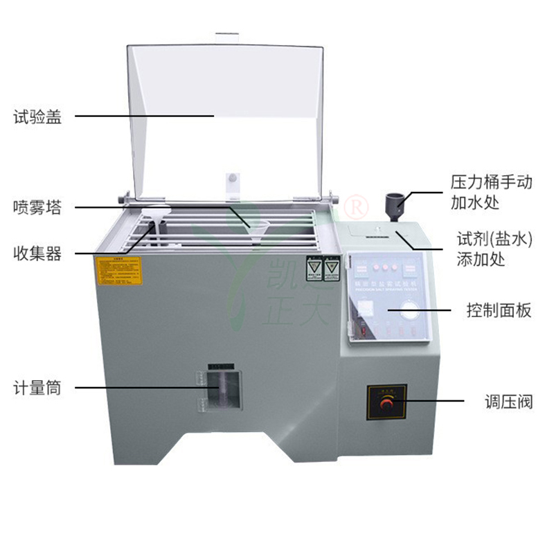 排氣管:排氣管直徑是48MM,試驗室的鹽霧由此孔排出,在做試驗時最好是接一根軟管把鹽霧引致室外,千萬不能堵塞或有積水之現(xiàn)象。