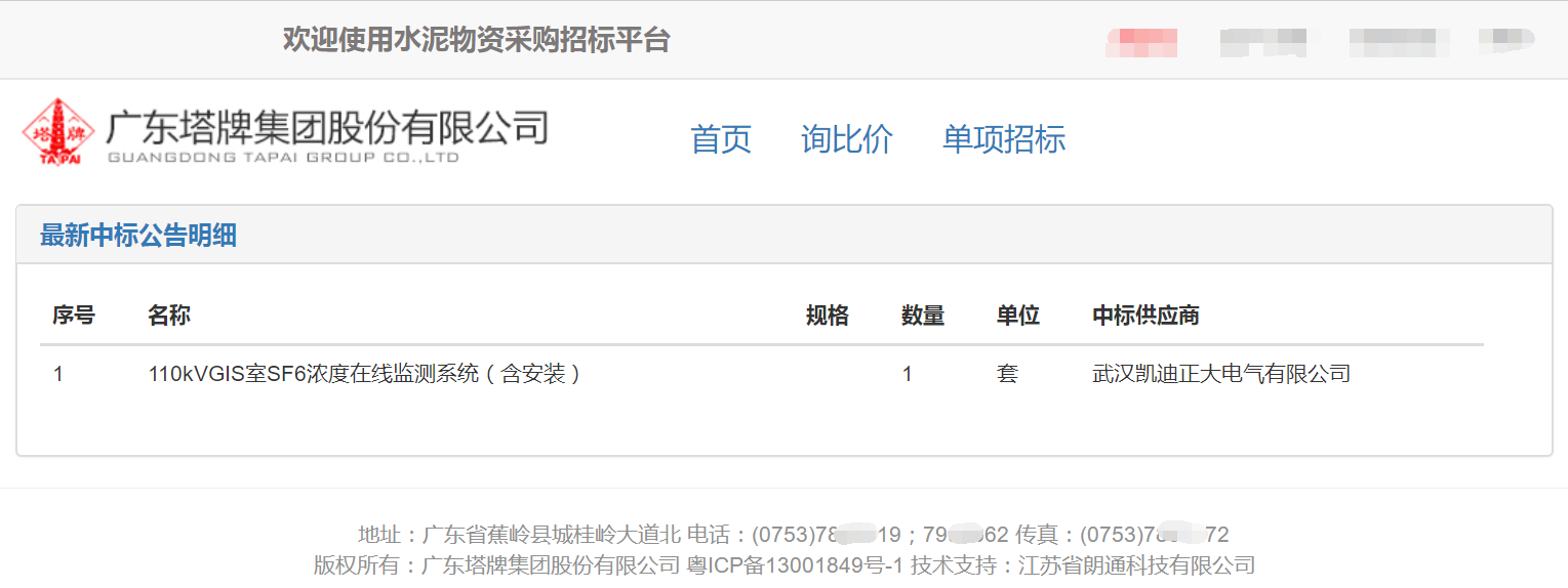 塔牌集團是國家水泥工業結構調整重點支持的60家大型企業之一,2019年被評為中國水泥上市公司綜合實力排名第十位。塔牌集團蕉嶺分公司在了解南網梅州供電局安裝我司六氟化硫在線監測報警系統后,邀請我司參與投標。在南網廣東電網公司大部分變電站的運行業績、廣東計量院的校準報告、國家知識產權專利報告等一系列的優質榮譽。塔牌蕉嶺公司授予我司中標供應商,互惠互利的合作、精誠至善。凱迪電力、凱迪水利、凱迪科技的項目也在大量使用塔牌的優質水泥。
