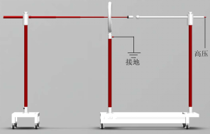 如上圖所示為2中驗(yàn)電器啟動(dòng)電壓的接線圖,左圖為帶接觸電極延長(zhǎng)的驗(yàn)電器,右圖為不帶接觸電極延長(zhǎng)的驗(yàn)電器。