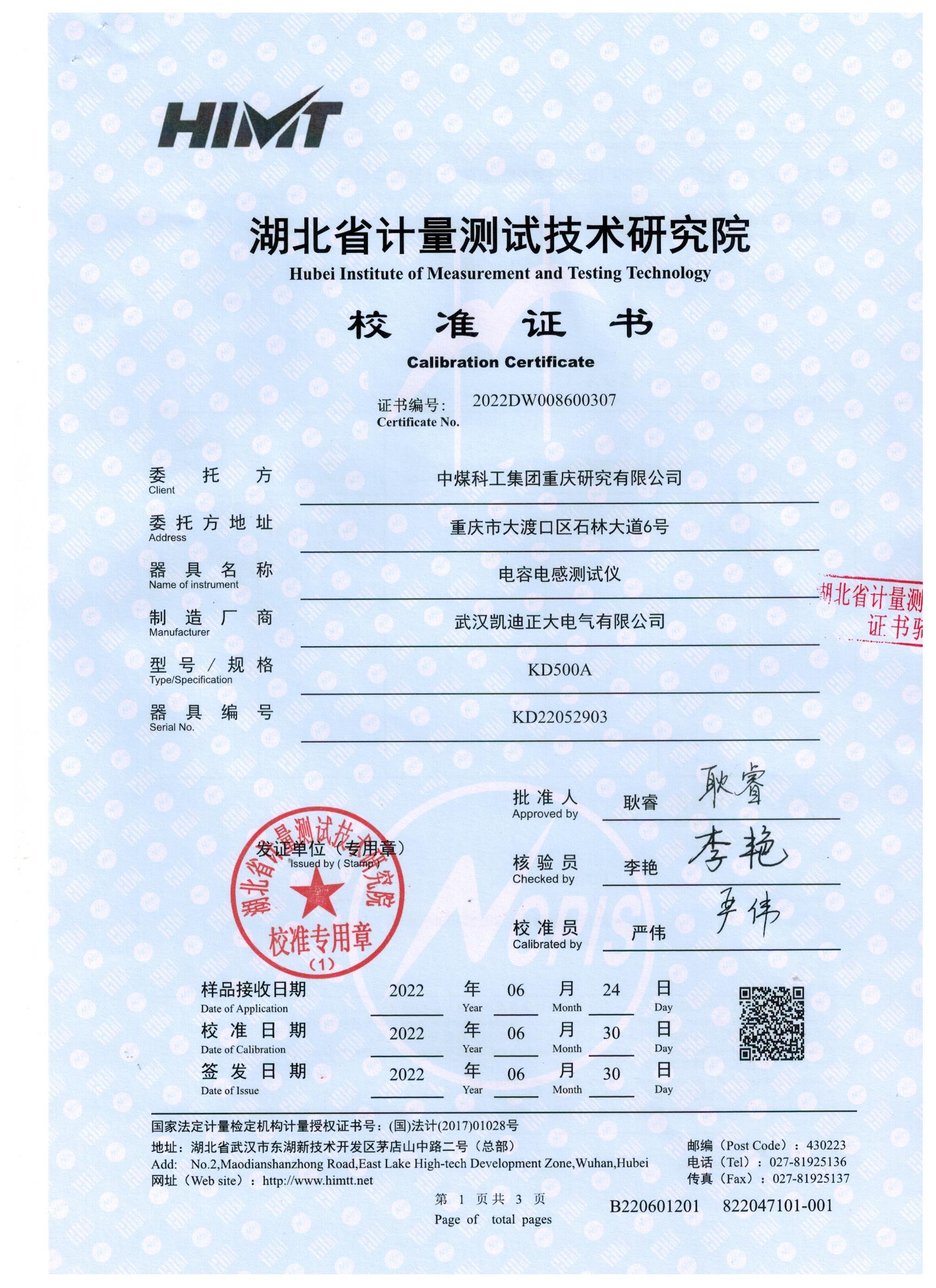 在雙方簽署采購合同后,我司技術人員立即將產(chǎn)品送往湖北省計量測試技術研究院進行檢測,經(jīng)過7個工作日的時間,產(chǎn)品順利的通過檢測并取得了校準報告,報告顯示產(chǎn)品所測參數(shù)十分準確,測量不確定度Urel=0.2%,幾乎符合客戶要求,在取得證書后,我司銷售人員立即將報告發(fā)送給中煤科工集團重慶研究有限公司采購人員,并著手準備發(fā)貨工作。