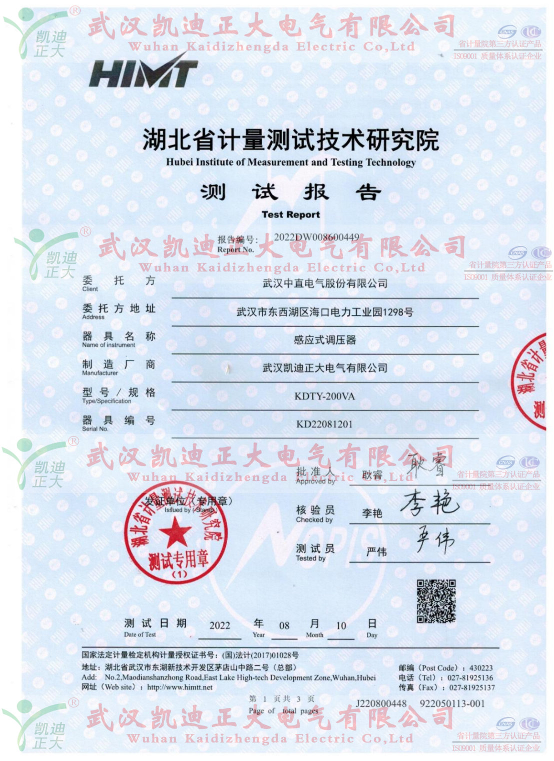 由于供應(yīng)速度、售后服務(wù)態(tài)度因素很快就收到了長(zhǎng)興電器集團(tuán)中直電氣股份公司的采購(gòu)訂單。感應(yīng)調(diào)壓器送湖北省計(jì)量測(cè)試研究員測(cè)試的紙質(zhì)報(bào)告已出。送檢結(jié)果如下:本次檢測(cè)是以數(shù)字多用表為主要檢測(cè)設(shè)備,以JJF 1587-2016《數(shù)字多用表校準(zhǔn)規(guī)范》為技術(shù)依據(jù),由湖北省計(jì)量測(cè)試技術(shù)研究院檢測(cè)完成的。