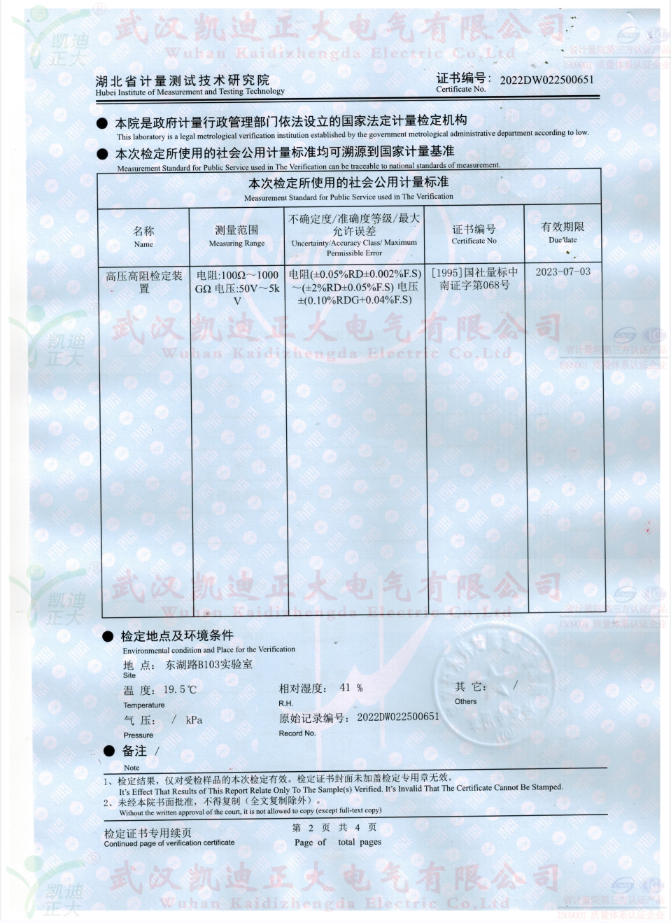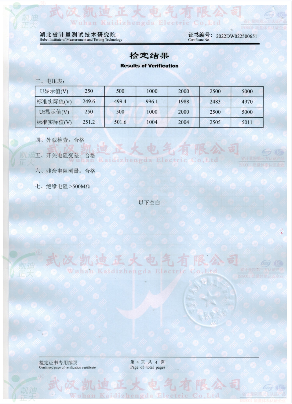 參照JJG1072-2011《直流高壓高值電阻器》檢定要求,ZX119-10絕緣電阻表檢定裝置(兆歐表檢定裝置)獲得證書2022DW022500651檢定證書,高阻箱符合檢定規程。