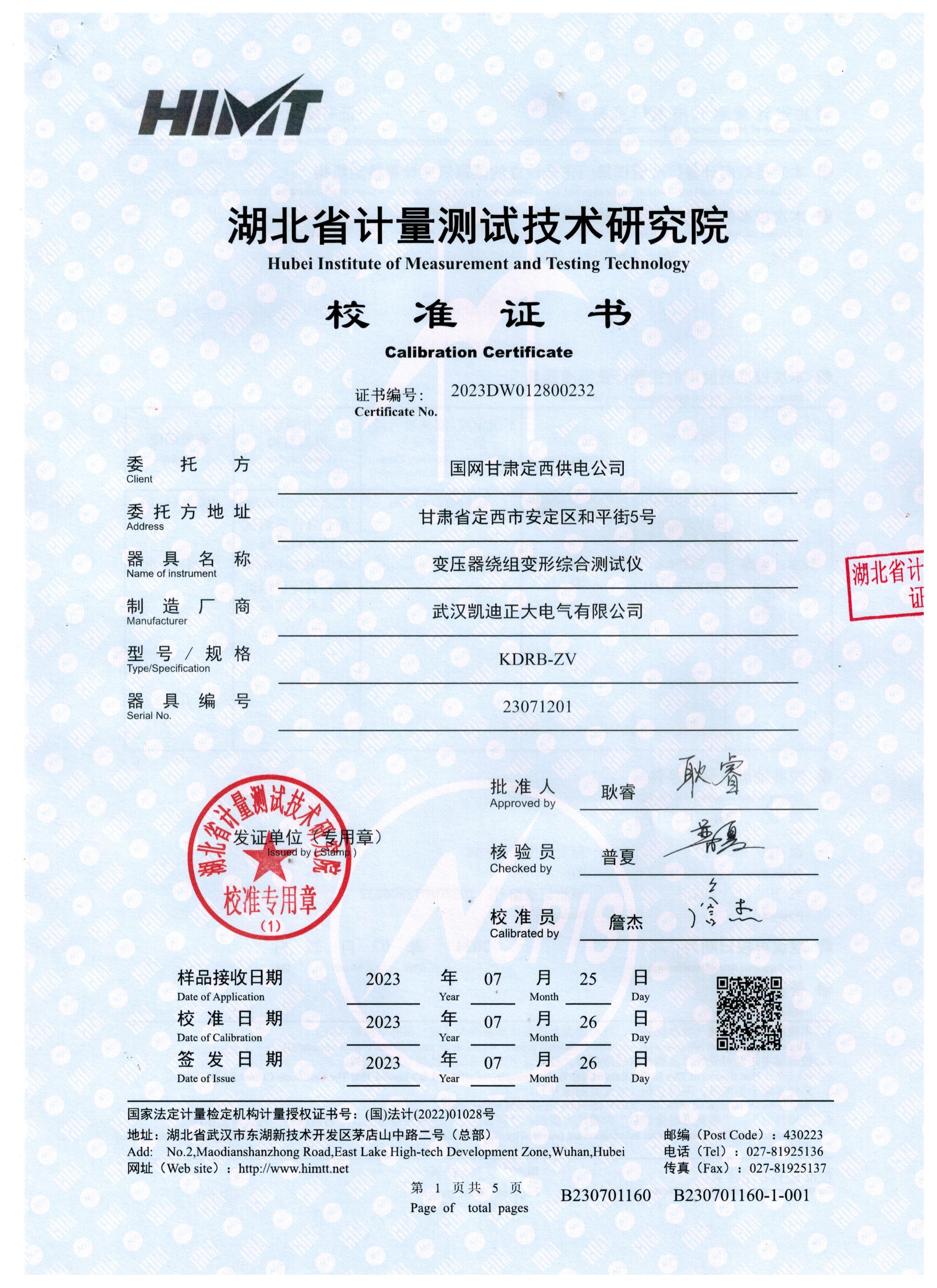 變壓器繞組變形綜合測試儀獲得電氣設備質量檢驗測試中心報告