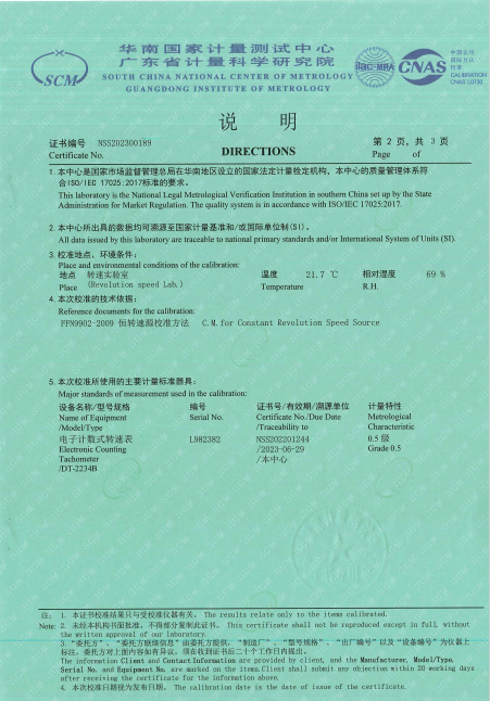 參照FFN9902-2009 恒轉速源校準方法 C.M.for Constant Revolution Speed Source 檢定要求,CY3恒速器(恒轉速源)獲得NSS202300189檢定證書。