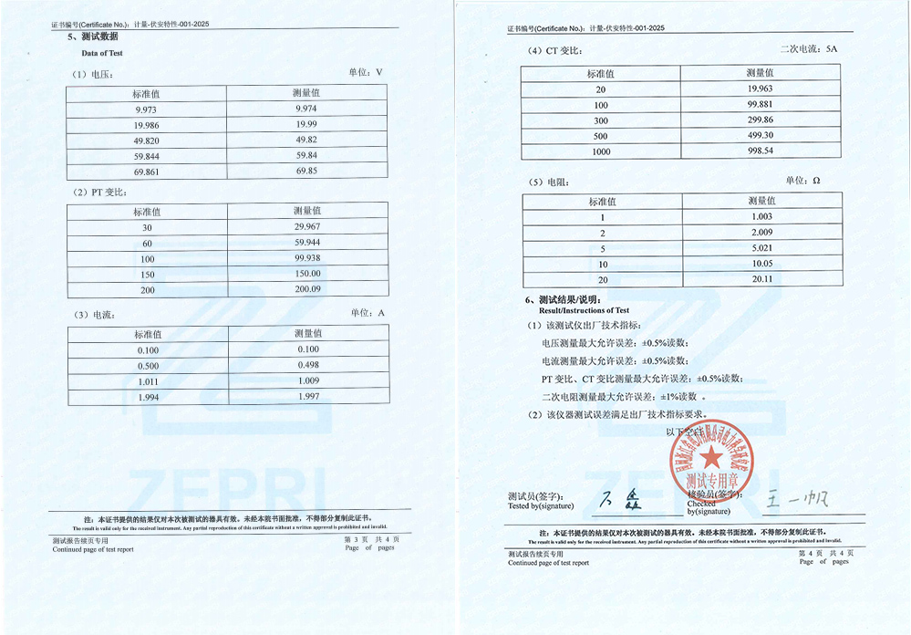 校準(zhǔn)圍繞對(duì)儀器的變比精度、角差控制、伏安特性曲線擬合度等核心指標(biāo)進(jìn)行了多場(chǎng)景模擬測(cè)試。KDHG-518C變頻互感器特性測(cè)試儀具有操作簡(jiǎn)便、功能全面、測(cè)試精準(zhǔn)等特點(diǎn),廣泛應(yīng)用于各類CT(電流互感器)和PT(電壓互感器)的性能測(cè)試。此次通過(guò)國(guó)網(wǎng)浙江省電力有限公司電力科學(xué)研究院的校準(zhǔn),充分證明了KDHG-518C在技術(shù)指標(biāo)、測(cè)試精度和穩(wěn)定性等方面的可靠表現(xiàn)。