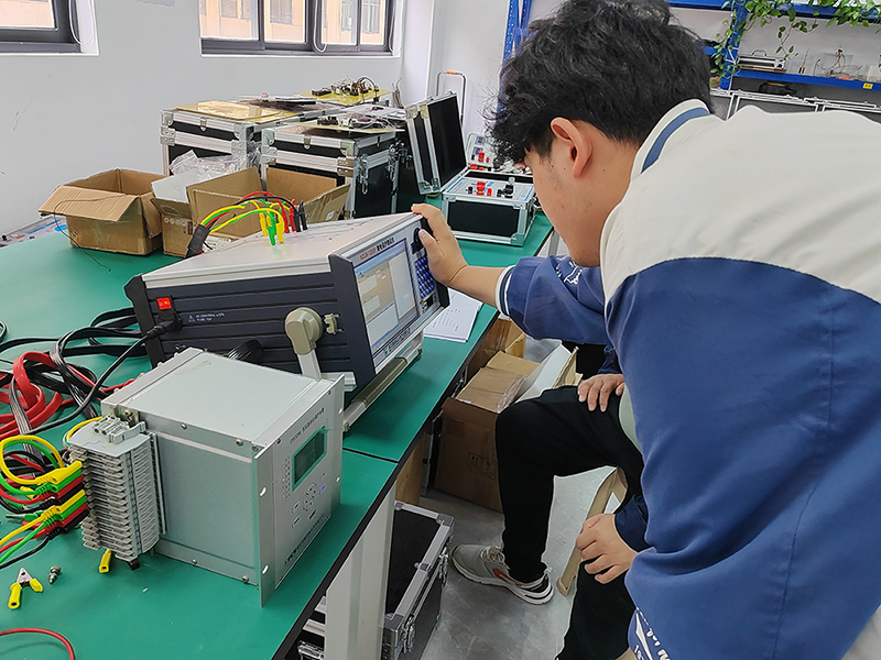 隨后,代表團深入生產車間進行實地考察。更進一步詳細的了解KDJB-1200Y的操作流程,在我司工程師的指導下,代表團技術人員親自操作設備,完成了對模擬繼電保護裝置的定值校驗測試。當看到測試數據實時顯示并自動生成標準化報告時,代表團表示:這種零距離的實操體驗,讓我們對產品的可靠性有了最直觀的感受。
