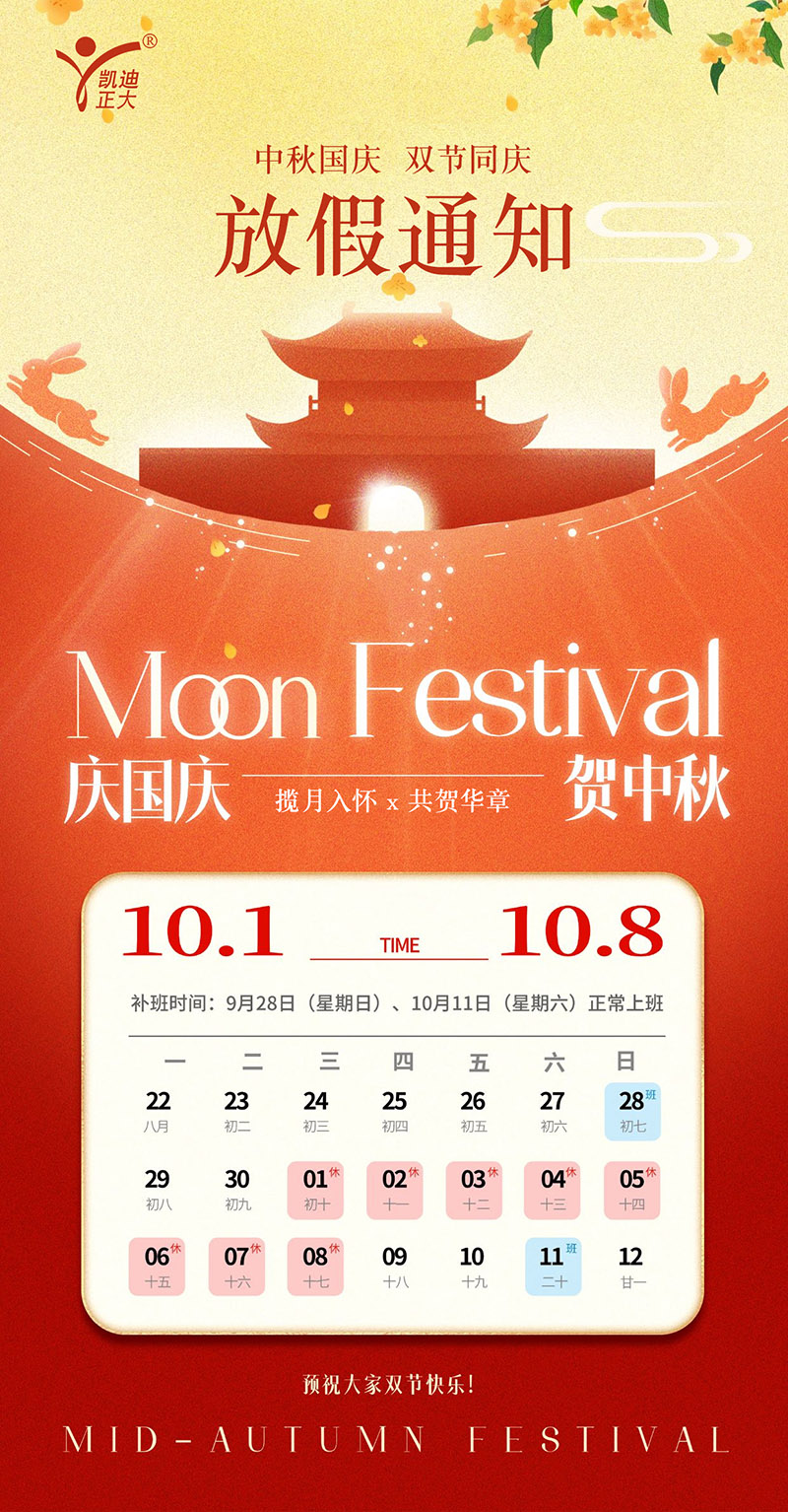 凱迪正大電氣2025年國慶中秋放假通知: