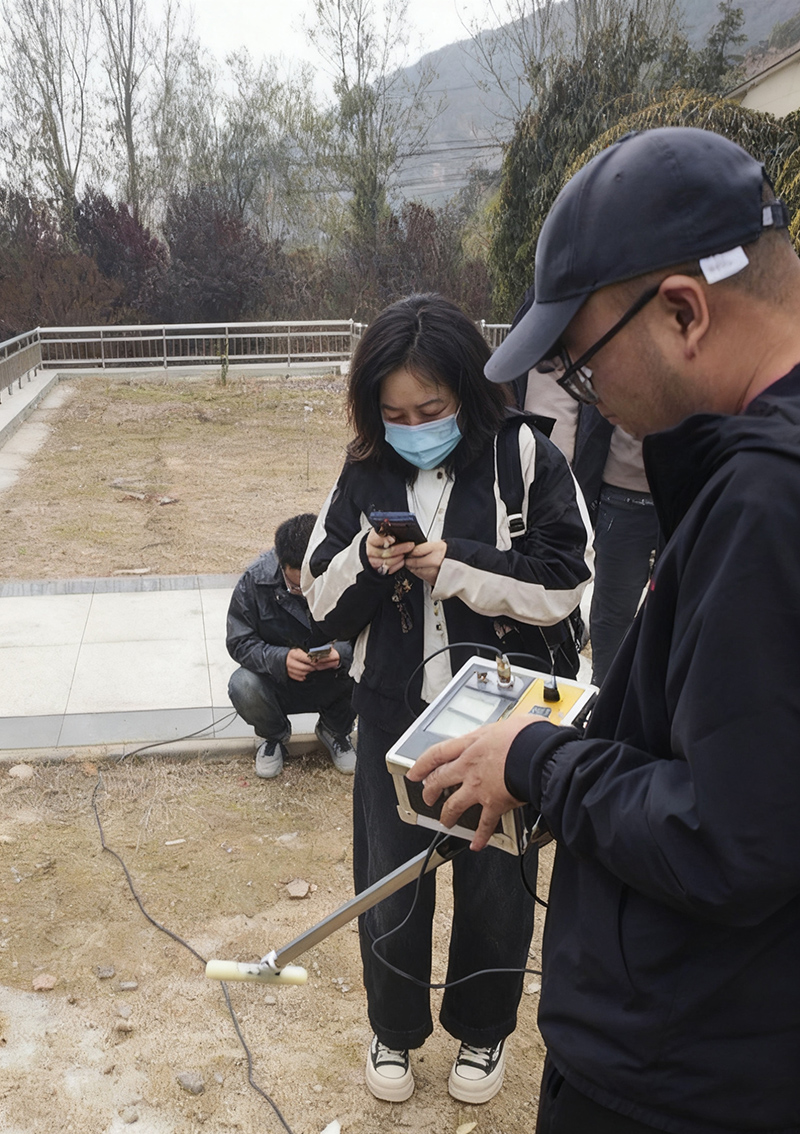 在室外場(chǎng)地,技術(shù)人員演示了如何使用磁感應(yīng)探測(cè)棒進(jìn)行電纜路徑探測(cè),并通過峰值法/空值法判斷電纜走向與埋深。隨后,現(xiàn)場(chǎng)演示了差分電位法定位接地故障的操作流程,包括A字架的使用、方向指示燈判斷、信號(hào)強(qiáng)度分析等關(guān)鍵步驟。