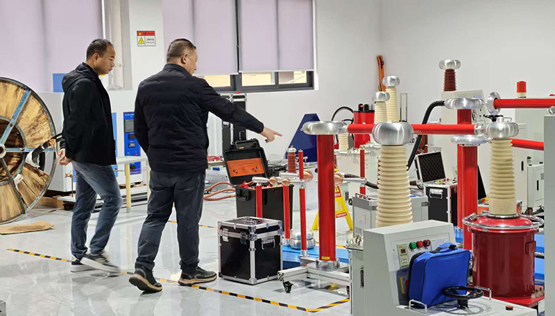 隨后,客戶一行來到高壓試驗(yàn)室,親眼目睹了多臺(tái)高壓測試設(shè)備的試運(yùn)行場景,包括沖擊電壓發(fā)生器、串聯(lián)諧振系統(tǒng)等大型試驗(yàn)設(shè)備。技術(shù)人員現(xiàn)場重點(diǎn)演示了無局放試驗(yàn)裝置操作流程,并詳細(xì)解答了客戶關(guān)于設(shè)備技術(shù)參數(shù)、應(yīng)用范圍等方面的詢問。