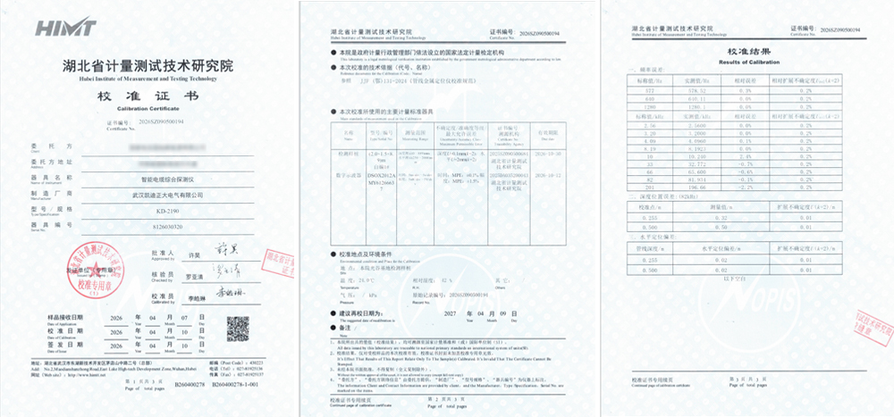 獲得省計量院校準(zhǔn)證書—KD-2190智能電纜綜合探測儀,賦能管線運(yùn)維全場景